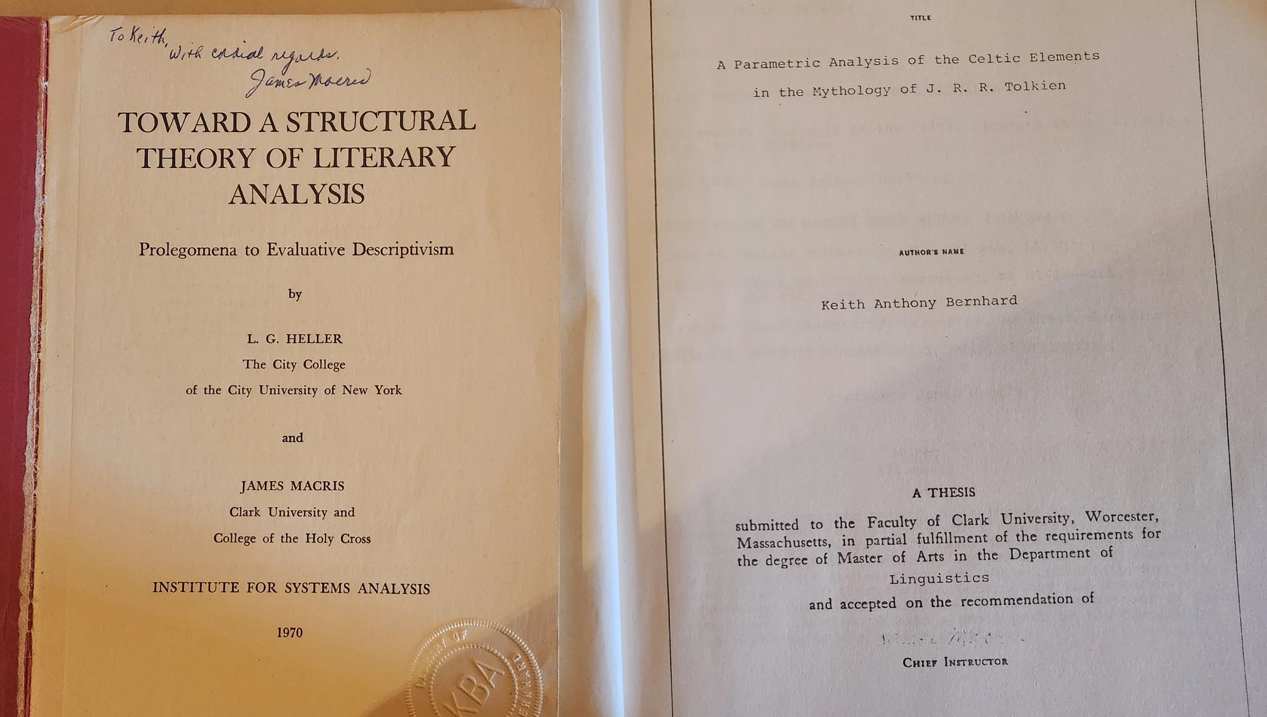 The theories set forth in the following essay are based on those put forth by Dr. L.G. Heller and Dr. James Macris in their 1970 monograph Toward a Structural Theory of Literary Analysis and further developed by Keith Bernhard (the author of this essay) in his 1980 master’s thesis A Parametric Analysis of the Celtic Elements in the Mythology of J.R.R. Tolkien.